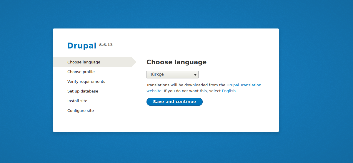 Şimdi, veritabanına bağlanmanın ve Drupal 8 web sitenizi kurmanın tam zamanı!